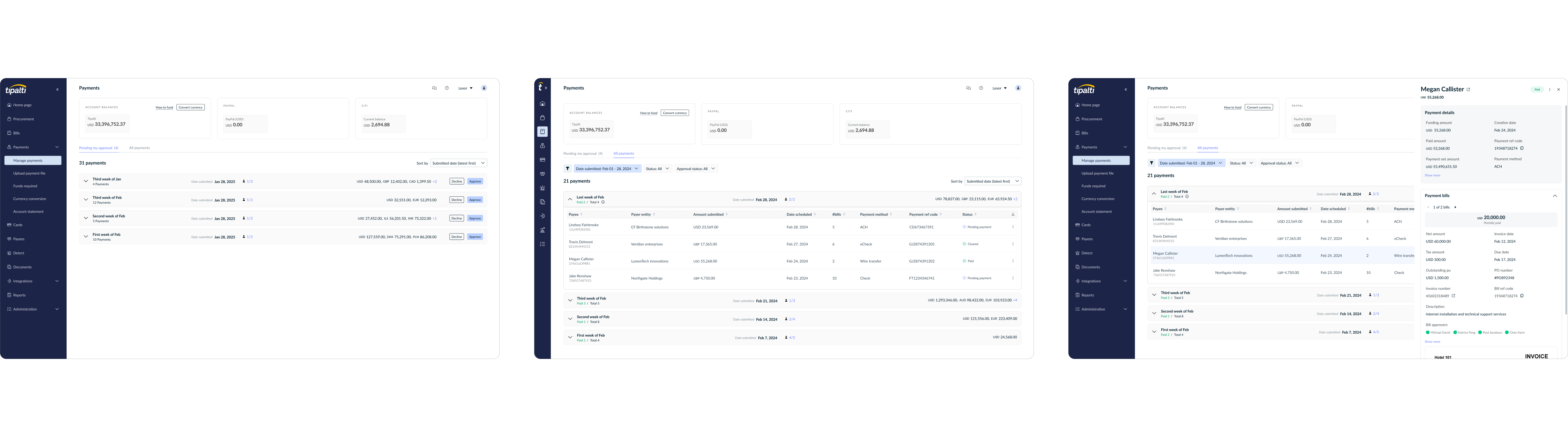 The AP processor needs to quickly review the statuses of the payments. To support this, I added a tooltip that allows them to scan and view the statuses of all payments within the batch without any clicks.